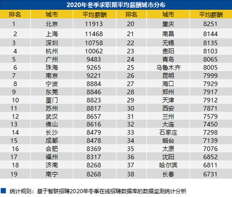 根据2020年12月30日智联招聘发布《2020 年冬季中国雇主需求与白领人才供给报告》,北京平均薪酬为1.19万。