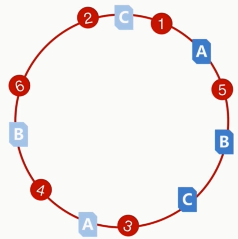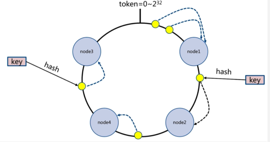 节点按顺时针转动,遇到的第一个机器,就把数据放在该机器