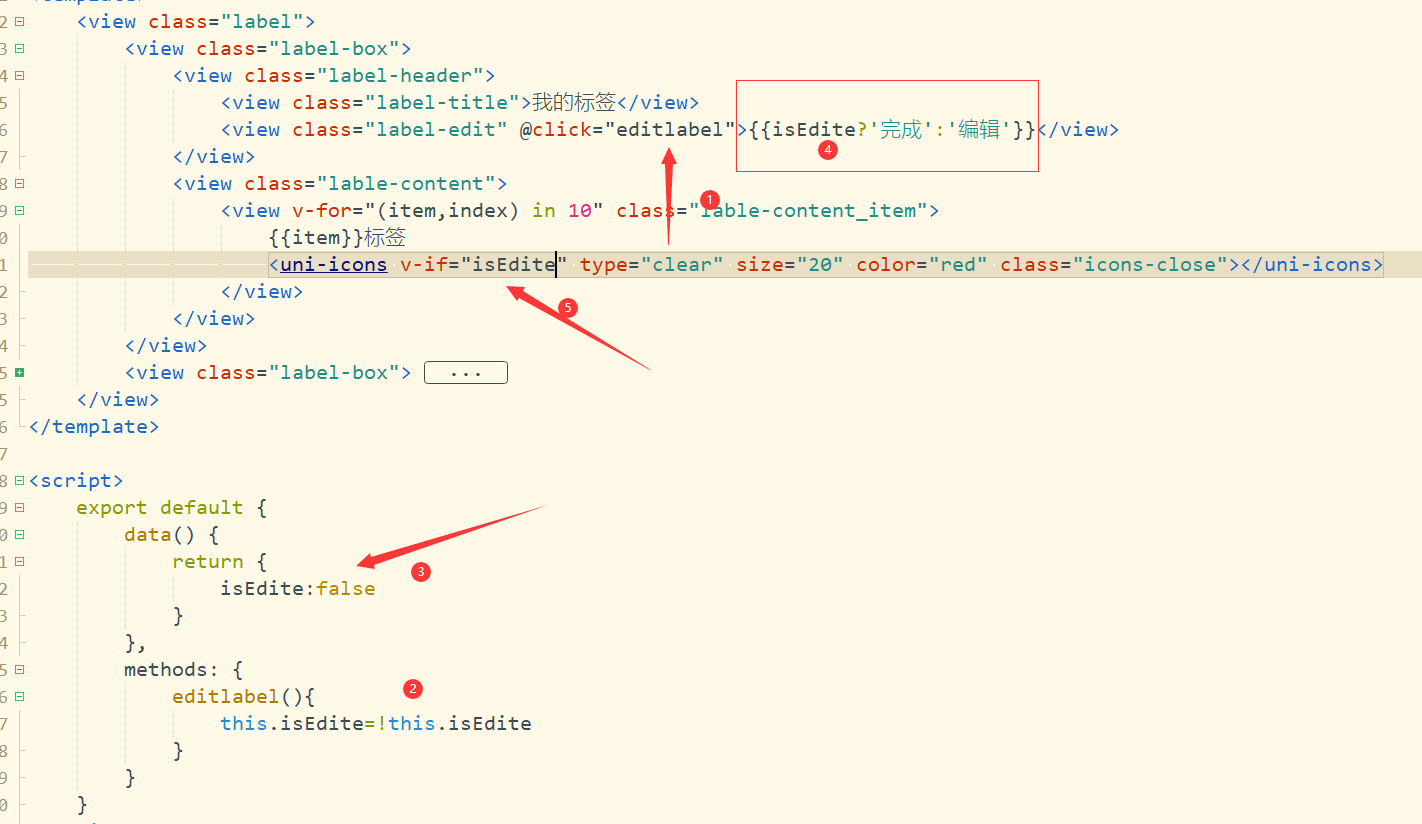 通过变量来判断是显示编辑还是完成,是否显示❌