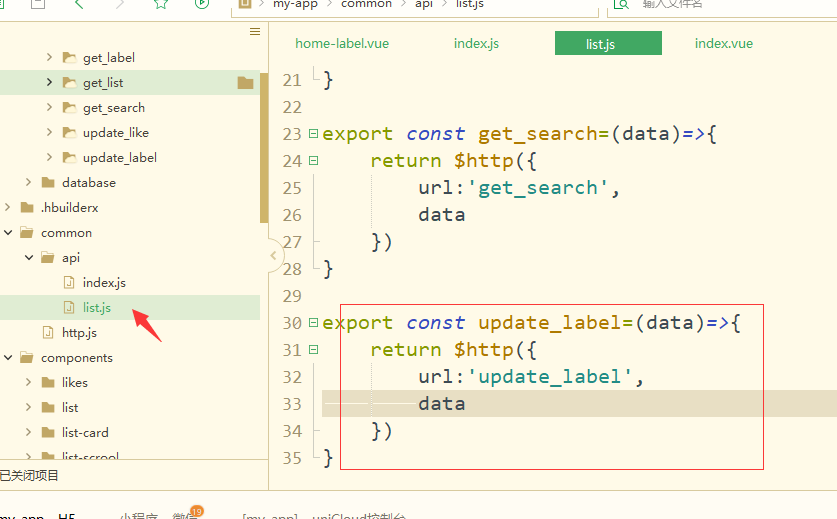新建云函数:update_label