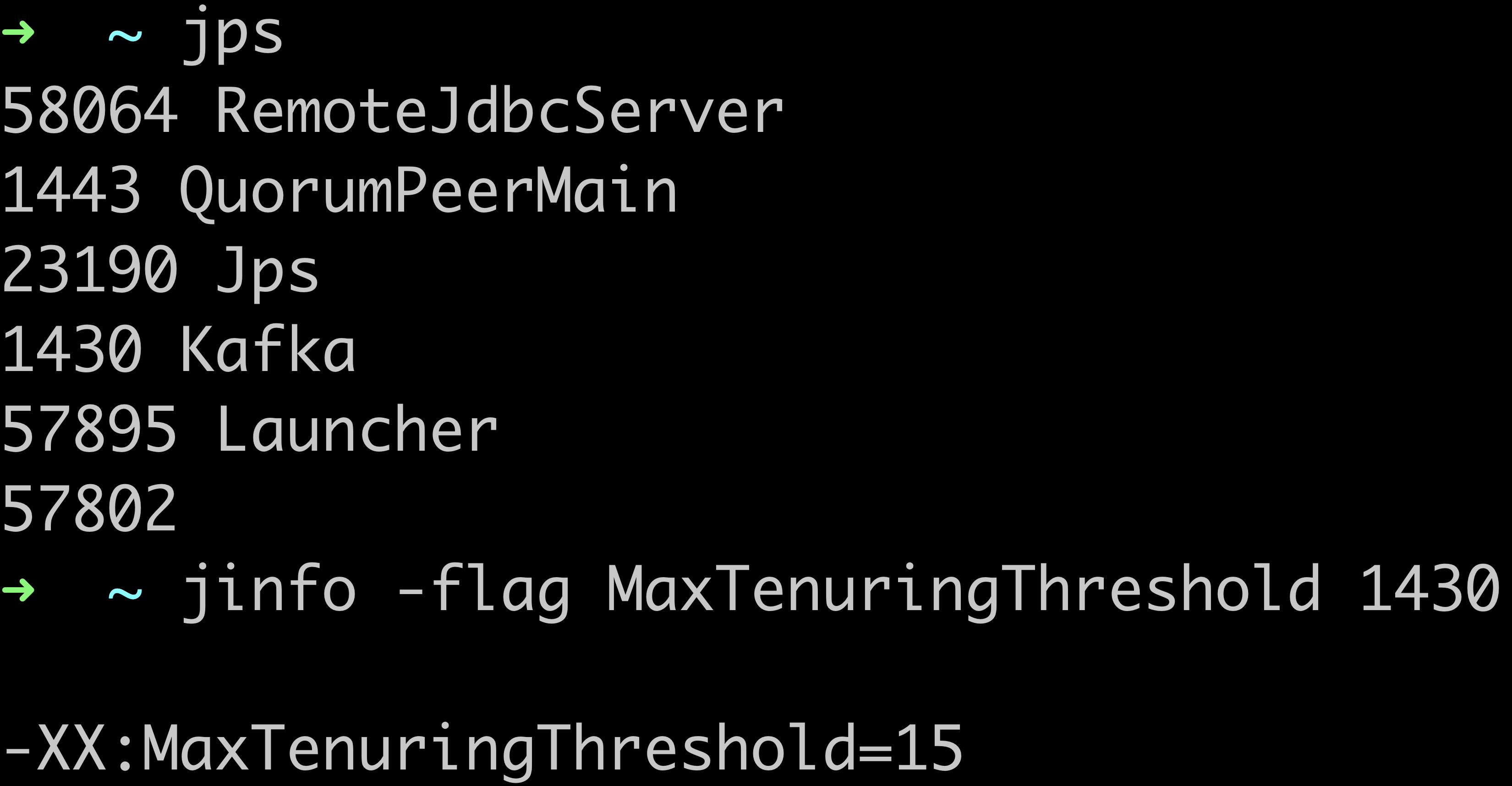 jinfo -flag MaxTenuringThreshold 31518