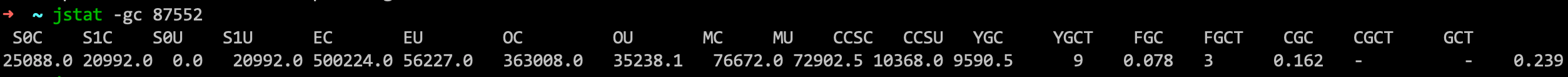 ➜ ~ jstat -gc 87552