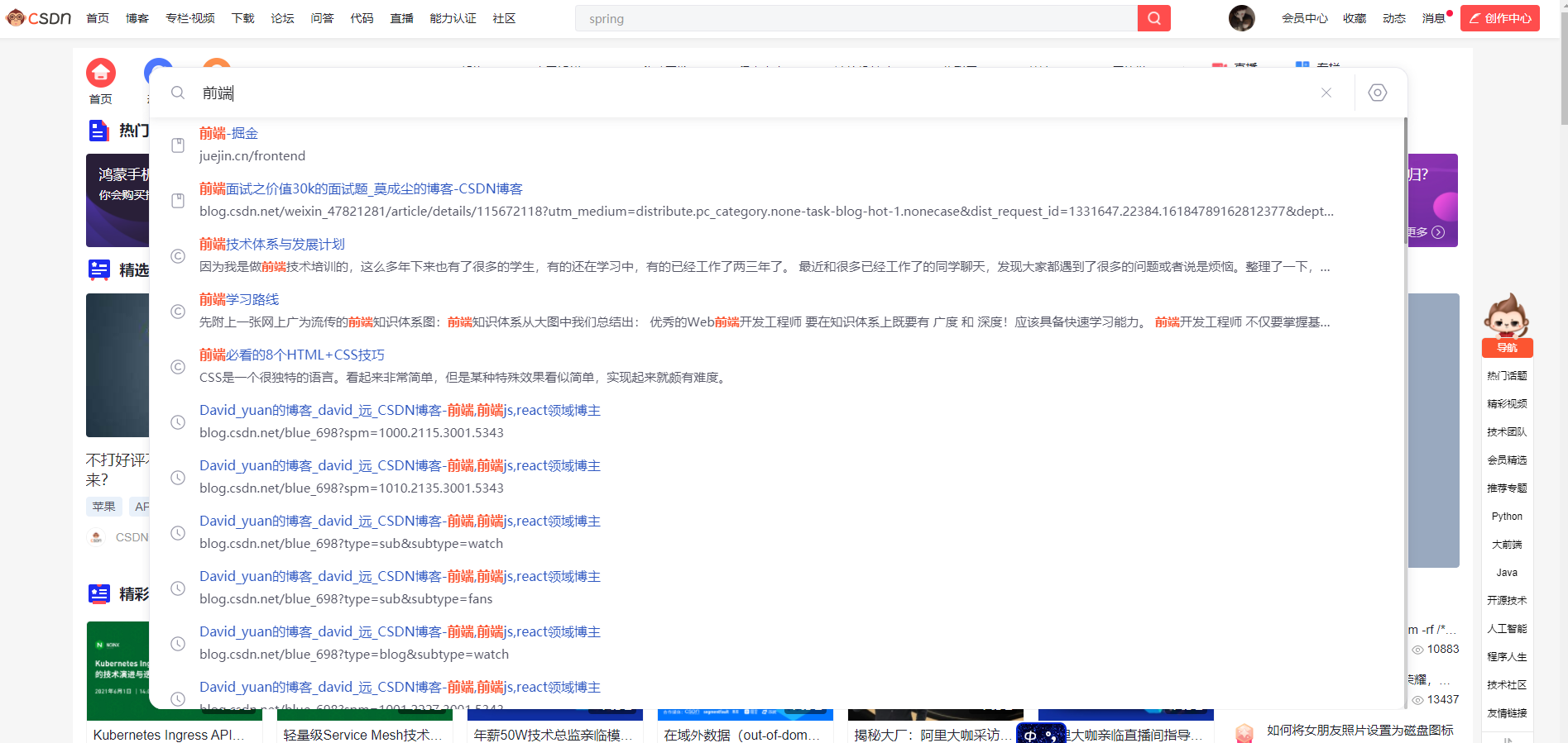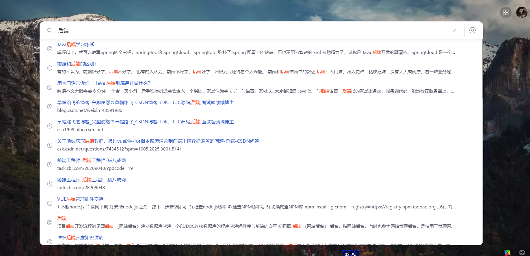 我们可以一键搜索技术内容, 不用浏览器也可以查询到