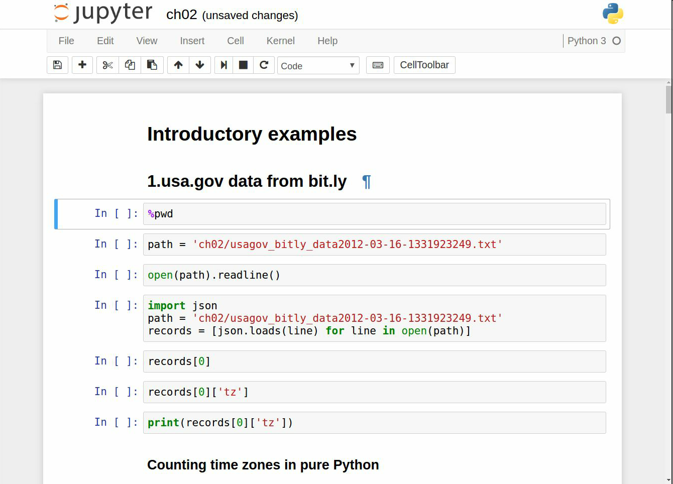 最好在IPython和Jupyter中亲自尝试本书中使用的工具。当你学会了如何启动Ipython和Jupyter,我建议你跟随示例代码进行练习。与任何键盘驱动的操作环境一样,记住常见的命令也是学习曲线的一部分。