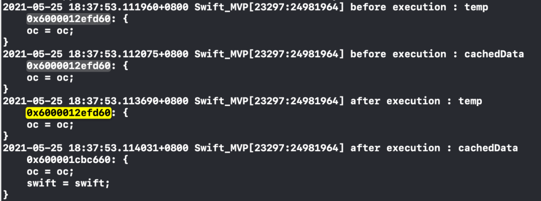 NSLog(@"after execution : cachedData %p: %@",t.cachedData,t.cachedData);