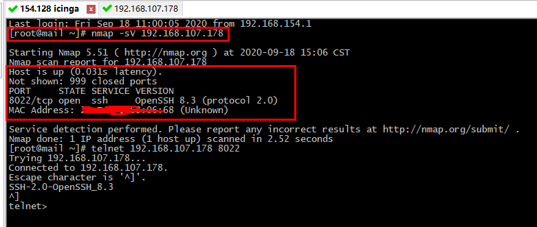 使用nmap扫描一下我的手机地址,发现ssh服务已经开启,端口在8022,说明我们安装启动成功了。
