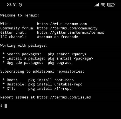 手机上安装好Termux后,点击图标进入,给我们提供了一个命令行