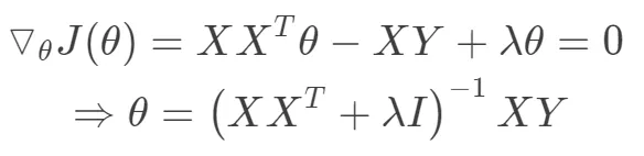 由凸二次规划问题的极小值在导数为0处取到,且极小值为全局最小值,且有闭式解。根据数学表达式实现矩阵之间的运算求得参数w。