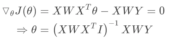 对于上面的目标函数,我们的目标同样是求解使得损失函数最小化,同样局部加权线性回归可以采用梯度的方法,也可以从最小二乘法的角度给出闭式解。