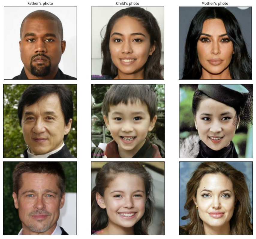 父亲(左)、预测长相(中)、母亲(右)